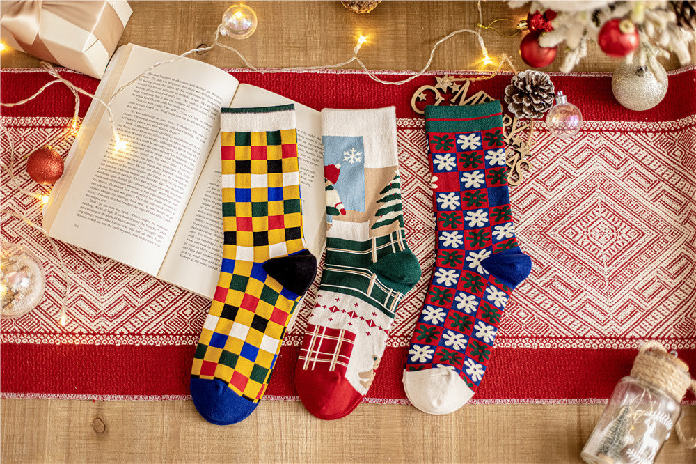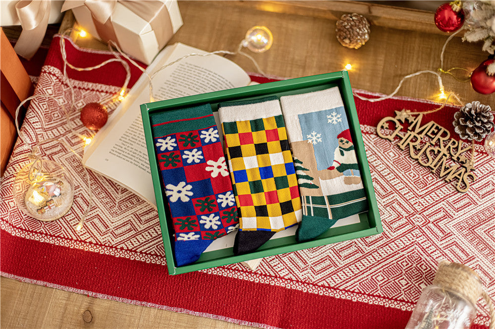3 Pairs High Quality Cotton Novelty Funny Cartoon Christmas Socks Women Unisex New Year Couple Socks In Gift Box