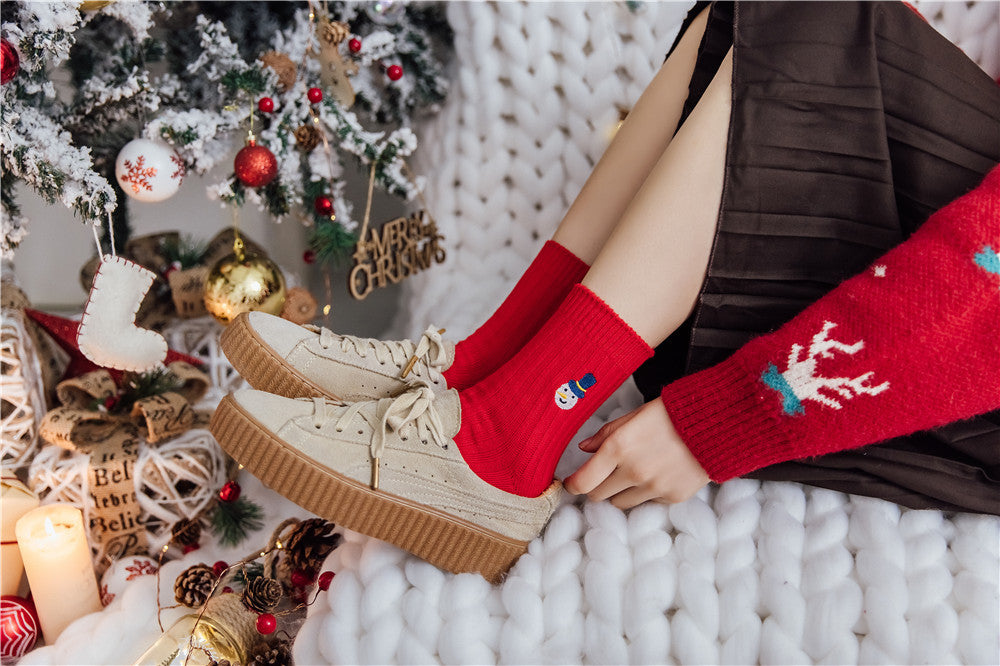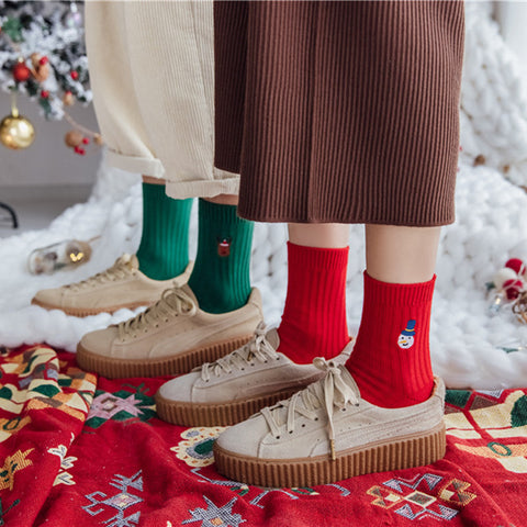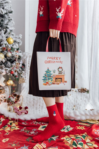 Embroidered Socks Men Unisex Xmas Knitted Christmas Socks Gift Box