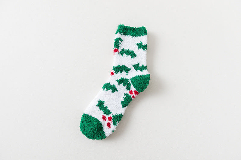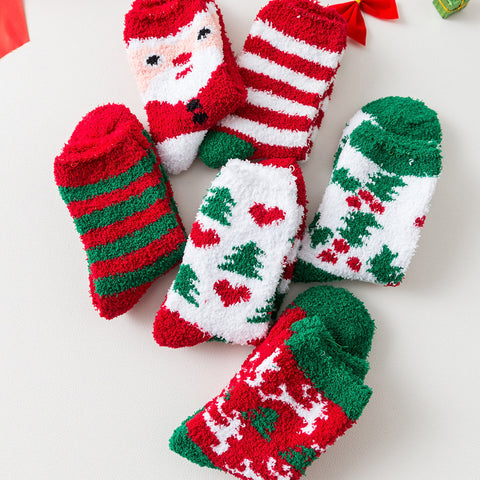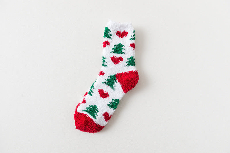 Hair Yarn Xmas Cartoon Character Print Warm Fleece Christmas Socks