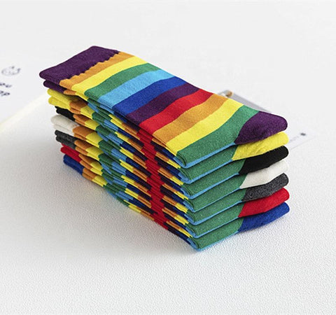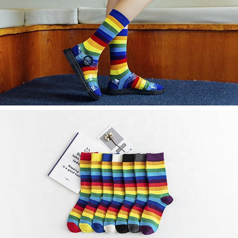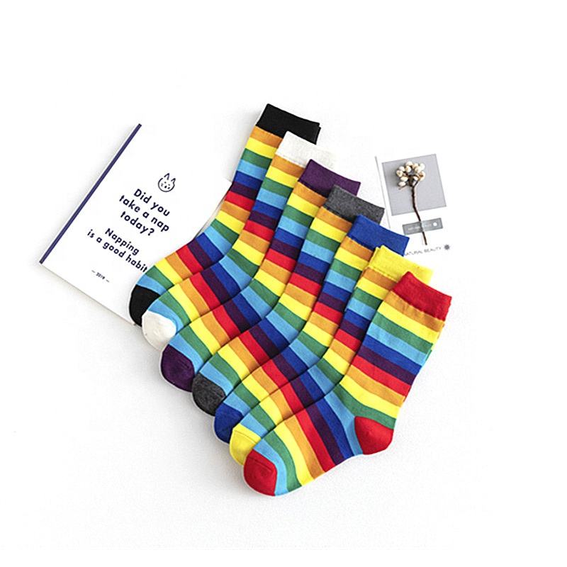 Japanese Korean new style middle stockings full cotton fashionable colorful school striped rainbow socks