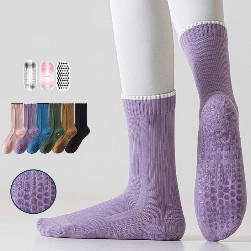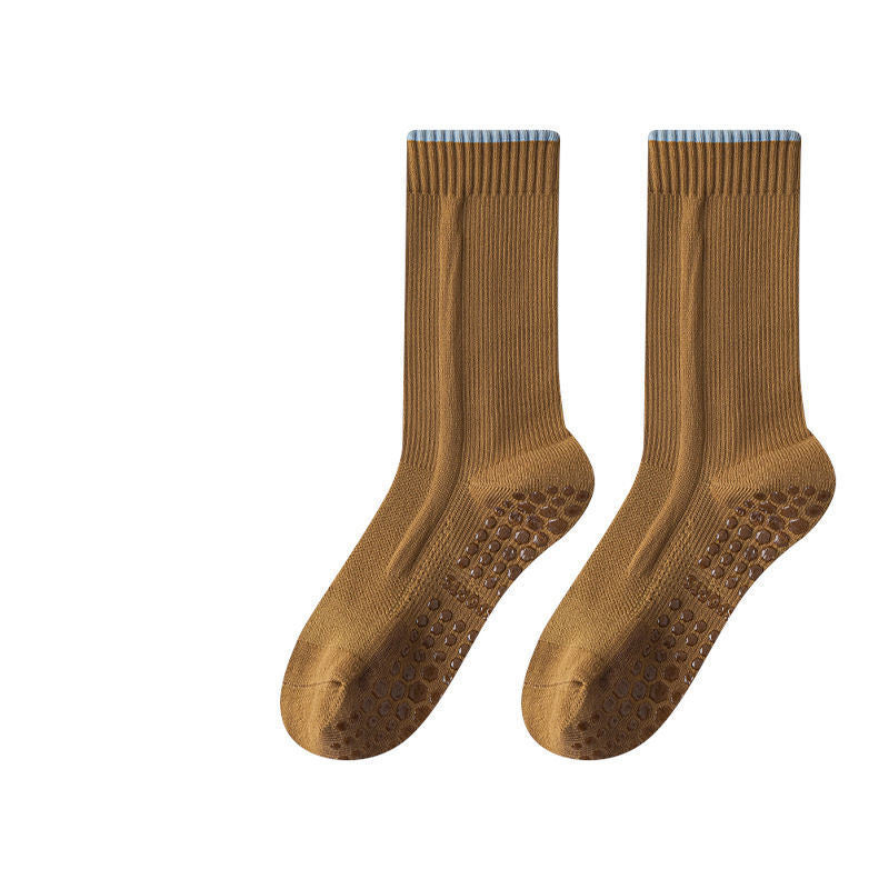 Personalized Rib Cuff Dispensing Anti Slip Pilates Yoga Grippy Socks Pressure Knitted Sports Socks for Women