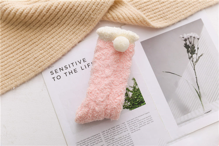 Comfy Warm Coral Fleece Sleep Socks Women Fuzzy Fluffy Crew Socks